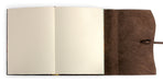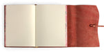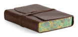 Available in black, chocolate brown, light tan, red, blue and now AVAILABLE IN GREEN! Edges are beautifully marbled, leather thong wraps journal flap to secure it closed. There are 416 cream-laid, unlined pages (208 sheets). This is a thick journal- a commitment for some of us, but a welcome receptacle for those whose writing flows.