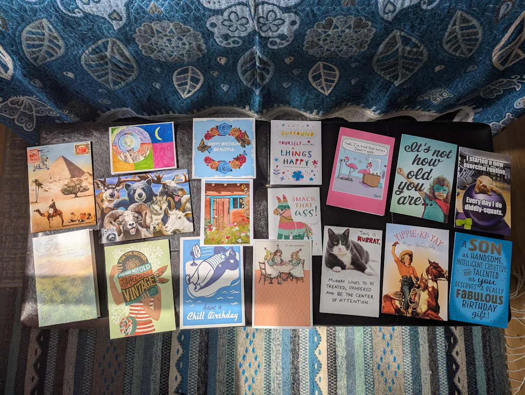 What's inside these card packs? It's a mystery, but we guarantee a good selection of greeting cards! The Two Hands Paperie Mystery Card Pack contains 15 cards for all occasions featuring cards from an array of vendors. You'll definitely see a few birthday cards, love, thank you, encouragement, and everyday, plus a variety of other occasions too. Take a chance and have some fun with your card writing!